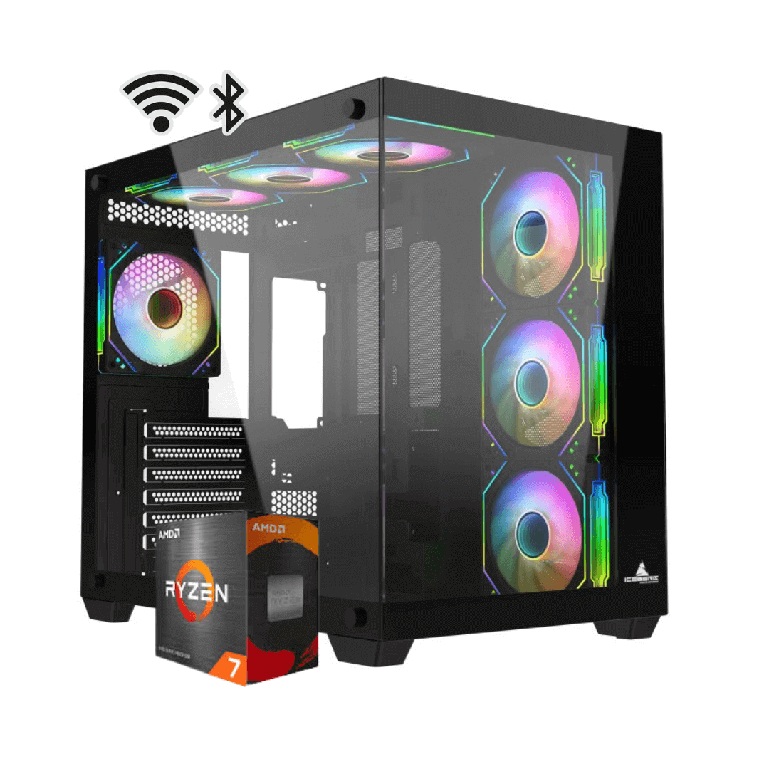 Chasis: Iceberg Crystal Wave con 7 ventiladores incluidos para máxima ventilación y estética gaming.